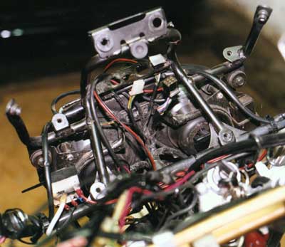 Danach ging es los mit dem Einbau. Zuerst wurde die gesamte Verkleidung ab- und die originalen Armaturen ausgebaut. Der große Vorteil der TT-Loesung besteht darin, das man nichts von den Halterungen fuer die Armaturen absaegen oder dauerhaft veraendern muss. So, nun ging es weiter. Die originalen Armaturen werden mit einem 9er und einem 6er Japanstecker befestigt, der Tripmaster hat einen eigenen 3er, den wir aber nicht brauchen.