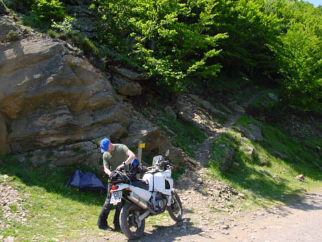 unterwegs in den Bergen in der Naehe von Argeles, Schotter bei der Hitze macht keinen Spass :\