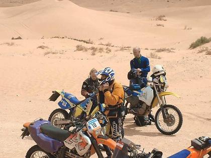 Eine Herausforderung ist fuer Motorradfahrer eine Tour in die Sahara – hier eine Gruppe, in der der Cottbuser Falk Schmal mitgefahren ist.
