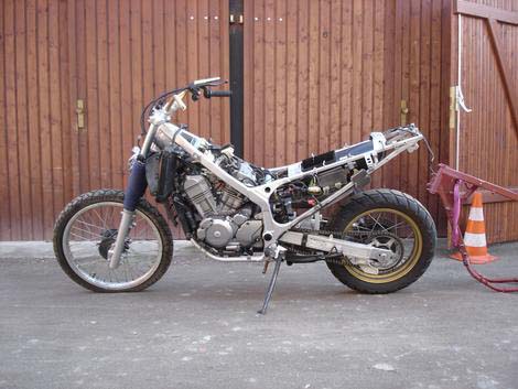 das ist der Stand 09.2006, neuer Rahmen, Motor ist drin, alle Fluessigkeiten auch, Fahrwerk ist auch komplett, Bremsanlage ist ebenso fertig; ein paar Sachen muessen noch gebastelt werden, ein RD07 Motor in einem RD04 Rahmen mit RD07 Kabelbaum gibt so einiges zu denken :)
