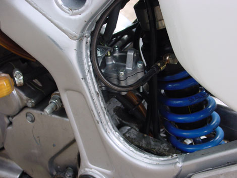 Da meine originale Benzinpumpe nun schon 90.000 km auf dem Buckel hat und das Honda-Teil ja laufleistungsbedingt kaputt gehen kann, wurde diese gegen eine Mikuni-Unterdruckpumpe getauscht.