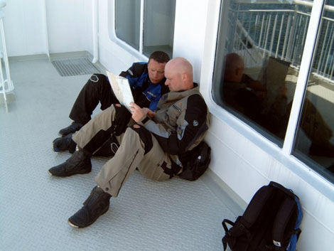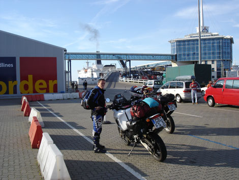 7 Uhr in der Frueh an der Faehre in Mukran - nach 350 km