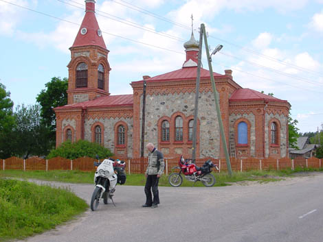 das kleine Dorf Kolka am Rigaer Meerbusen mit typisch russicher Kirche