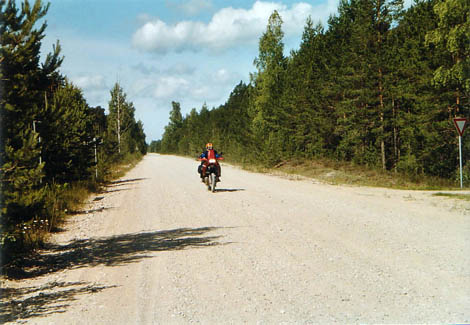 auf dem Weg nach Kolka, ca. 60 km nur feinster Schotter