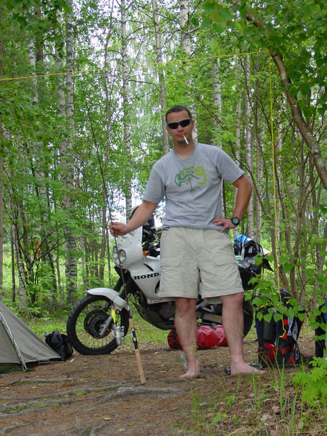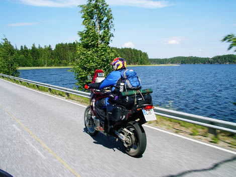 typische Strassen im Hinterland von Finnland, die machen ganz besonders morgens um 6 Uhr bei leichtem Nieselregen Spass ;) als wir sahen, wie Sami mit einem Tourance besohlt dort langgebrettert ist, war uns klar, warum es soviele gute Rallyefahrer in Finnland geben muss