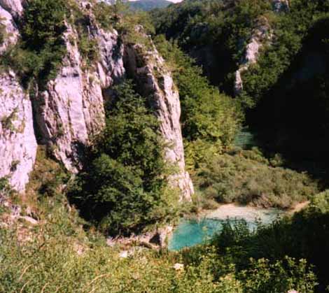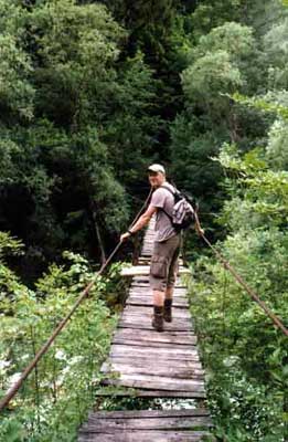Lustig im Soca-Tal sind die alten Haengebruecken ueber den Fluss; sie sind schon recht alt und manchmal braucht man schon ein wenig Mut, um darueber zu stiefeln.