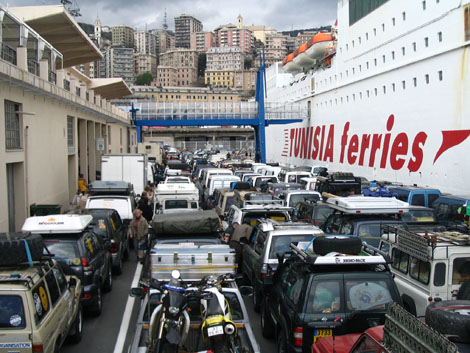 der uebliche Gelaendewagenstau vor der Faehre