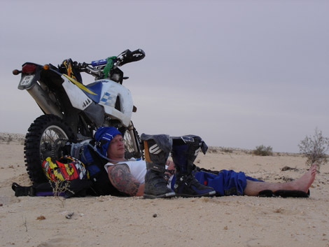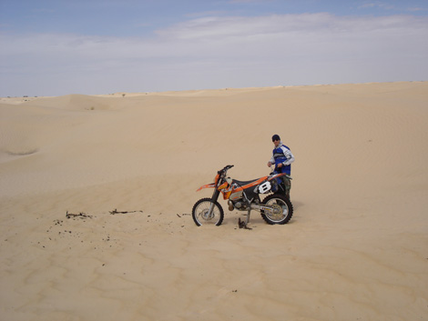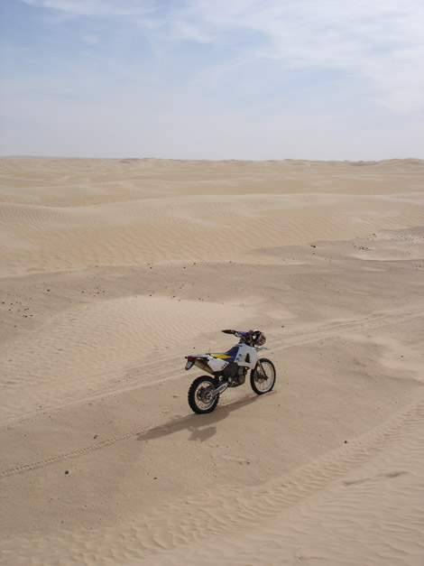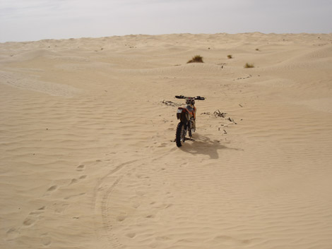 das kann alles so schoen sein, wenn man nicht gerade ein Motorrad ueber den Sand ziehen muss