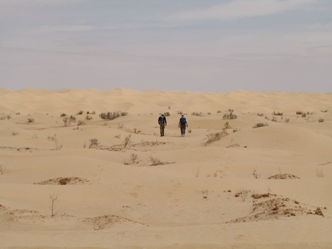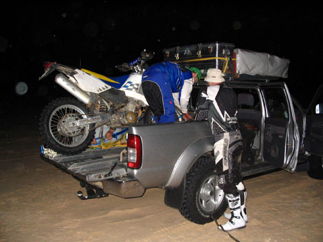 nachts dann kamen ie Jungs; wir haben die Husky aufgeladen und sind wieder zurueck nach Douz