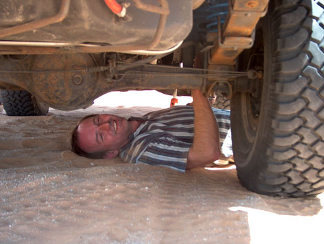 Spati bei seiner Lieblingsbeschaeftigung: unter dem Bus liegen und schrauben