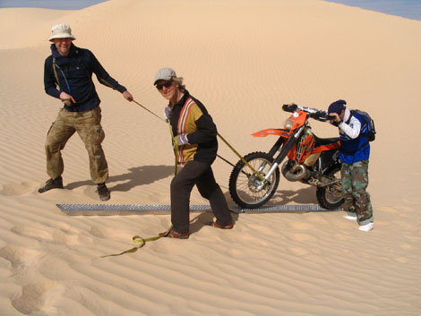 am Berg nahmen wir dann die Sandbleche und konnten so auch steile und sandige Stellen zwar langsam, aber ohne groesse Plackerei ueberwinden