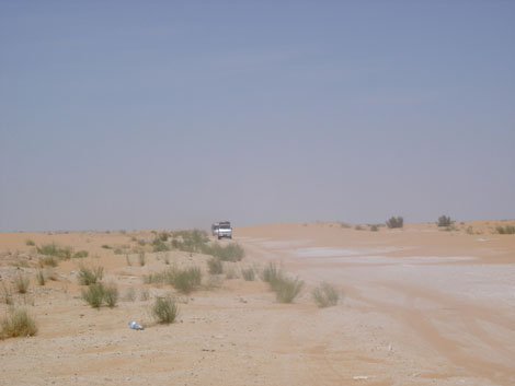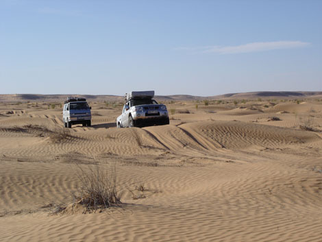 die Piste zum Tanbouine, die beiden Gelaendewagen