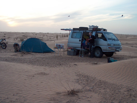 unser Nachtlager 10 km vom Tanbouine entfernt, man beachte die Piepmaetze, die waren extrem zutraulich